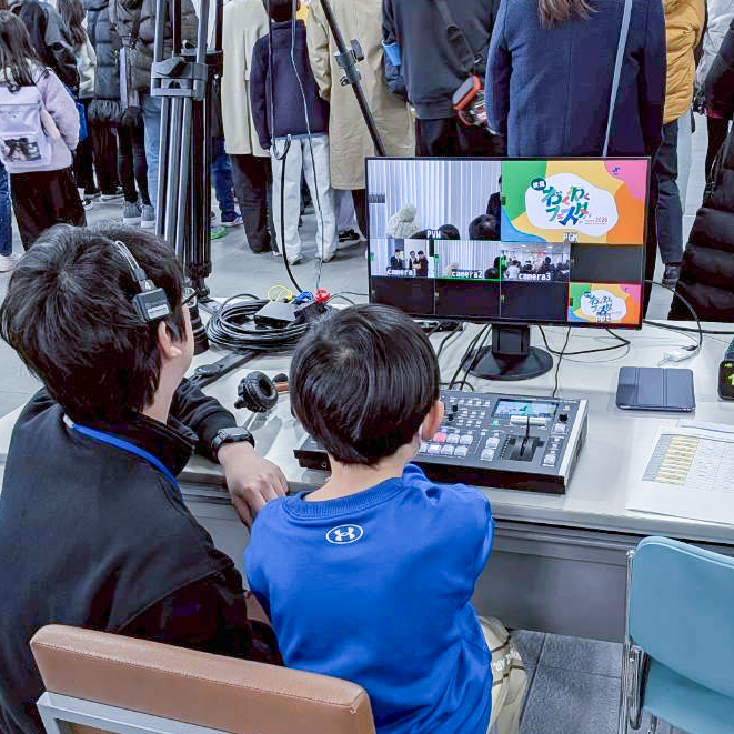 当社では『架空のイベント』を設定し、こどもたちに音響・映像・撮影で使う機材を実際に操作してもらう没入型職業体験、言うなればVRのような経験をしていただきました。